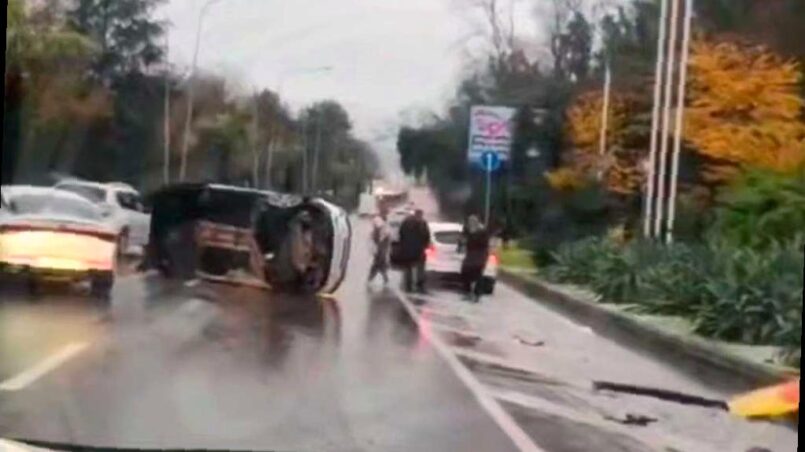 На трассе «Сочи — Адлер» в Хосте произошло дорожно-транспортное происшествие. В районе автозаправочной станции «Роснефть» легковой автомобиль перевернулся после аварии.