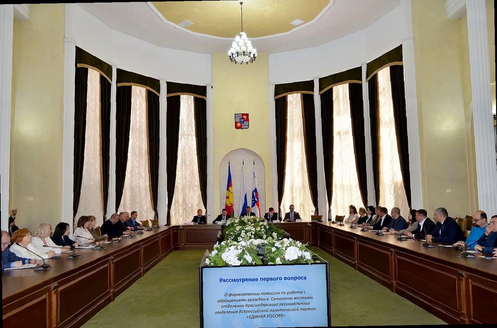 На встрече присутствовали представители президиума, включая председателя Городского Собрания Сочи Виктора Филонова, заместителя главы курорта Александра Митникова и депутата Государственной Думы Сергея Кривоносова.